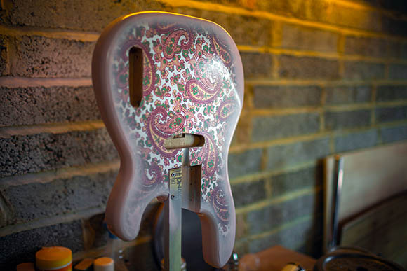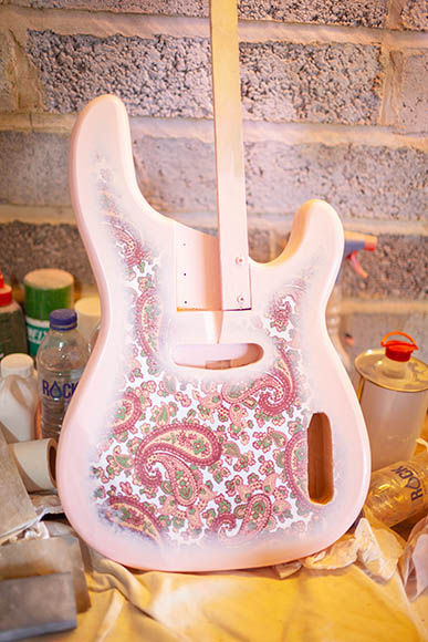 I Glued down the paisely paper to the body using wood glue. This photographic paper is THICK